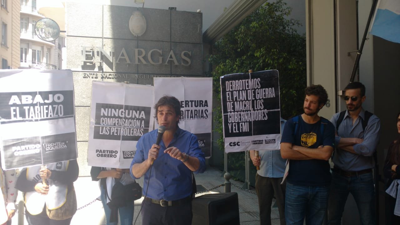 *Este mediodía en el acto realizado frente a Enargas, el legislador porteño del Partido Obrero-Frente de Izquierda rechazó el nuevo tarifazo en el servicio de gas y denunció que el aumento es un verdadero atropello contra el pueblo, que debe ser derogado.*